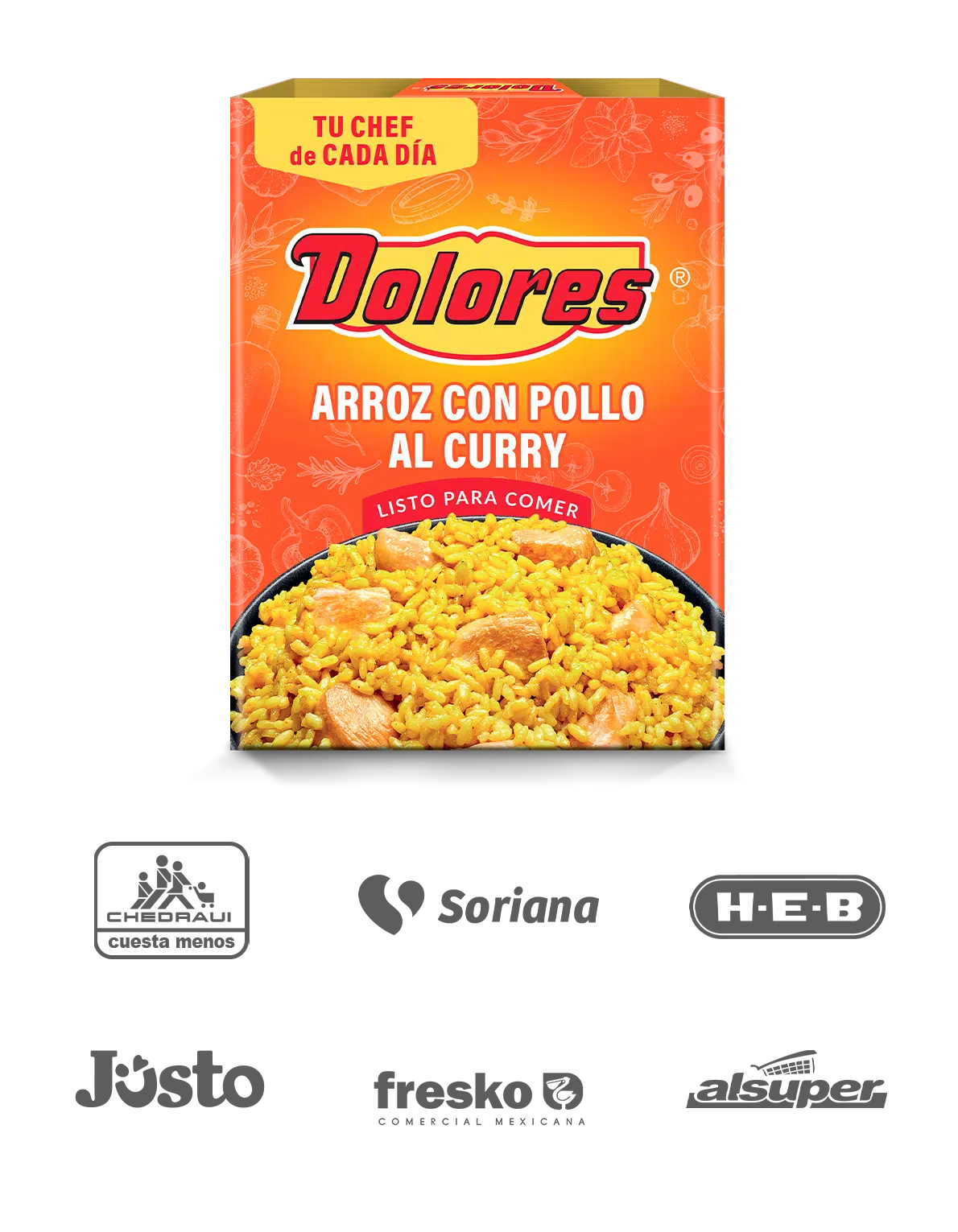 Si el tiempo no es tu aliado, Dolores sí. Disfruta de un delicioso Arroz con pollo al curry, la mezcla de sabores te encantará y estará lista en minutos. Solo calienta la charola y listo. ¡Convierte esta receta en tu favorita!