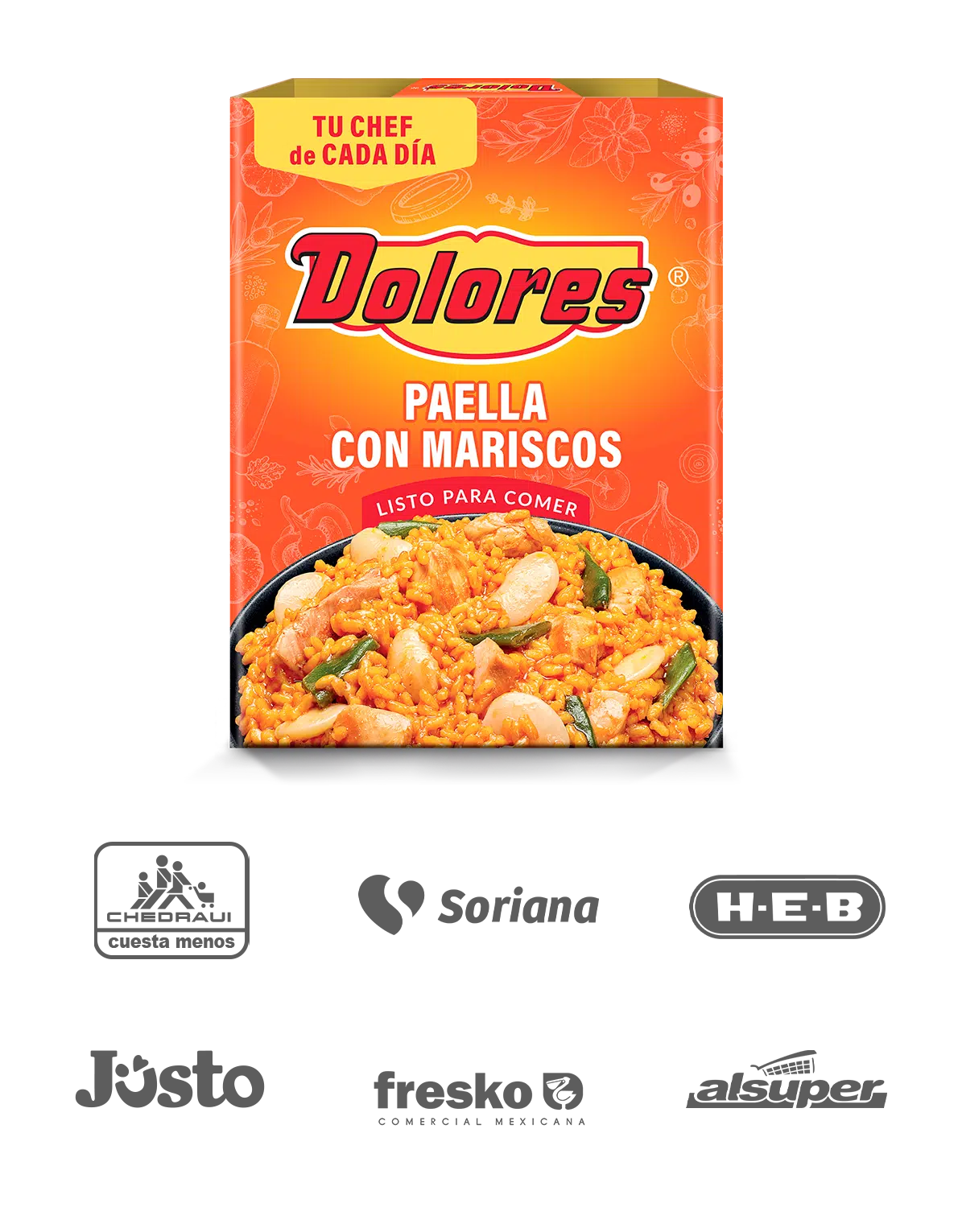 Si la Paella de mariscos es uno de tus platillos favoritos, pero demasiado difícil para cocinarlo, tenemos la solución perfecta. La Paella de mariscos Dolores está lista en minutos, un sabor delicioso y al alcance de tu mano. ¡Calienta y disfruta!